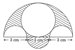 16. Three semicircles each of diameter 3 cm, a circle of diameter 4.5 cm and a semicircle of radius 4.5 cm are drawn in the given figure. Find the area of the shaded region.