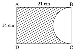 30. In the given figure, ABCD is a rectangle of dimensions 21 cm × 14 cm. A semicircle is drawn with BC as diameter. Find the area and the perimeter of the shaded region in the figure.