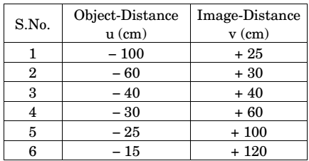 22. Analyse the following observation table showing variation of image-distance (v) with object-distance (u) in case of a convex lens and answer the questions that follow without doing any calculations: