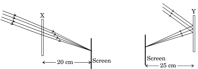 (D) Device X is a convex lens and device Y is a concave mirror, whose focal lengths are 20 cm and 25 cm respectively.