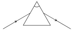 A student traces the path of a ray of light through a glass prism as shown in the diagram, but leaves it incomplete and unlabelled. Redraw and complete the diagram. Also label on it ∠i,∠e,∠r and∠D.