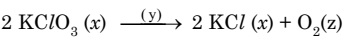 - x = number of moles of KClO3 ; y = reaction condition; z = no. of molecules of oxygen.