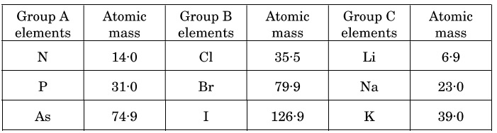 17(ii) The atomic masses of certain groups of elements are given below :