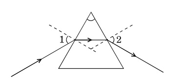 19(ii) In the given diagram showing refraction of a narrow beam of a monochromatic light through a glass prism, the angles marked ∠1 and ∠2 respectively are :