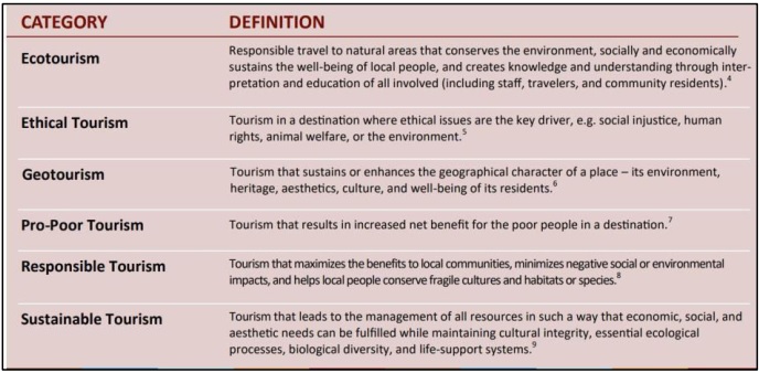 The UN’s 2017 International Year tells that sustainable tourism is an important tool for development, most importantly in poor communities and countries. Today sustainability - environmental, social, and economic - is increasingly recognised as the benchmark for all tourism business. As noted by the UN World Tourism Organisation, 57% of international tourist arrivals will be in emerging economies, by 2030. The various ‘Tourism Terms’ are defined as follows:
