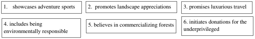 7. Fill in the blanks by choosing the correct options for ANY FOUR of the six sentences given below. (4x1)