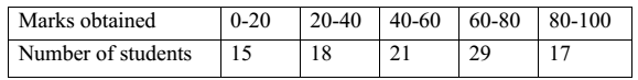 22. Find the mode of the following distribution of marks obtained by the students in an examination: