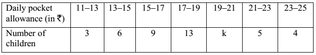 30. The following distribution shows the daily pocket allowance of children of a locality. The mean pocket allowance is Rs. 18. Find the missing frequency k.