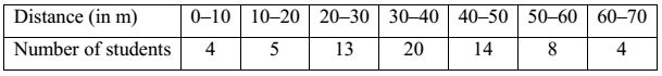 The following frequency distribution shows the distance (in metres) thrown by 68 students in a Javelin throw competition.