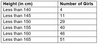 36. A survey regarding the heights in (cm) of 51 girls of class X of a school was conducted and the following data was obtained. Find the median height and the mean using the formulae.