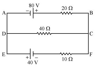 14. Using Kirchhoff’s rules, calculate the current through the 40 Ω and 20Ω resistors in the following circuit :